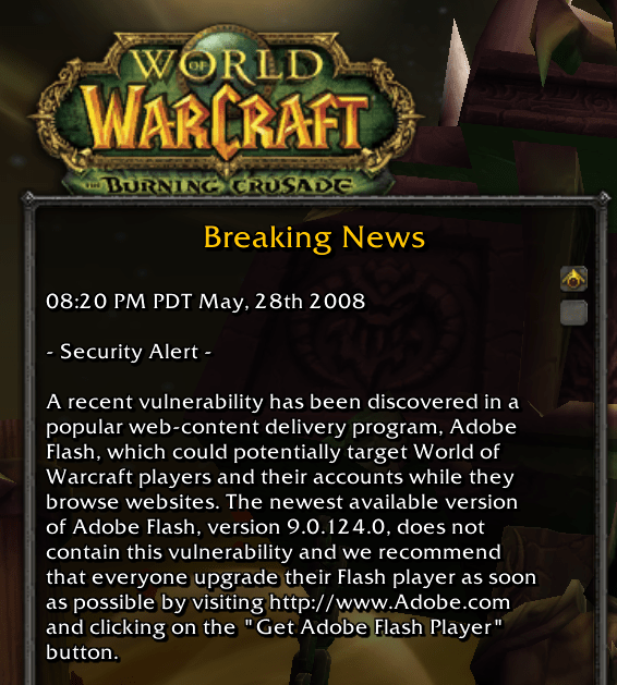 Before any of you receiving a “wave of the finger” bitch, consider the real world impact of your actions. In this case, only 12 MILLION people ended up seeing a vague warning when they loaded their favorite game. Blizzard included the correct fix information which was the same as a month or more before, but the sudden ‘security alert’ (that is extremely rare) only prompted their customers to wonder, possibly panic and definitely kill some demons as a result.