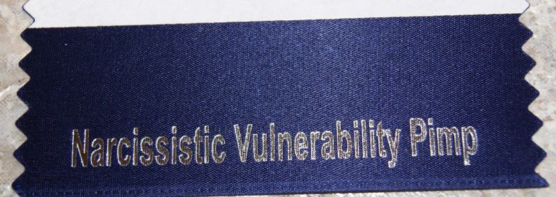 The box opened, a hand-written love letter spilled out followed by an orgy of odd items. Rubber gloves, stickers, plastic animals, a book.. oh my, pure bliss. The traditional beer caps showed my stalk[ee|er] had a higher quality taste in beer than boxes of the past. The rubber gloves are always a good safety measure for times when personal violation is in order. Large round stickers to act as pasties for my buxom bitch-tits. For the next security convention I suffer, I can label myself a ‘narcissistic vulnerability pimp‘. Well, she got two of the three words correct.