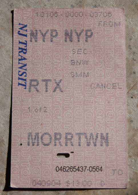 The transit ticket must be a test of my stalker ability.. what information can be gleaned from it?! Using mass transit in NJ is smart, because those weirdos don’t allow left turns. NYP must be New York Plot, how New Jersey sees that big plot of land next door. RTX was the defense contractor in The Falcon and the Snowman, giving me insight as to where she may work. I am pretty sure MORRTWN is a vague reference to Drunloria screaming “MOAR TOWN”, desperate to find the next bar serving up roofie-coladas. Thirteen dollars, the price of escape from New York?
