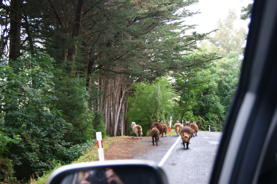 Woke up to warm sunny weather with plans to head up to Akaroa, an hour outside of Christchurch, to swim with the dolphins. An hour on the road and we canceled those plans as the weather turned cold and we began driving in and out of rain showers. Instead, we took the long drive as a chance to stop in several small towns along the way and head into Akaroa for the craft stores and a seafood dinner.