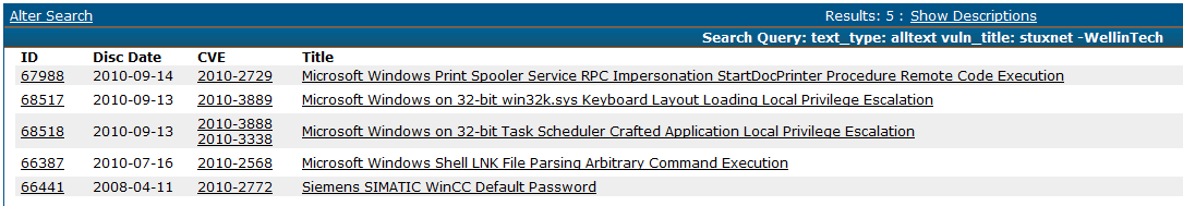 This statement is a red herring Mikko. Stuxnet used five vulnerabilities, only one of which was 0-day. One local privilege escalation used in Stuxnet was unknown at the time, the rest were documented vulnerabilities. If your excuse for the AV industry is that Stuxnet wasn’t detected because it used a 0-day, your argument falls flat in that you should have detected the other three code execution / privilege escalation vulnerabilities (the fifth being default credentials).