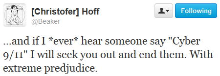 Many of us in the industry have been fighting the use of FUD-laced commentary, disastrous buzz words, and fear-mongering flavor quotes. Invariably, they come from politicians, money-seekers, charlatans, pundits, or morons that parrot the others. Dozens of responsible and concerned InfoSec practitioners have tried to fight the good fight, and lost. Decisively.