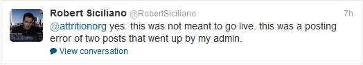 When I challenged Bobby on this point, asking if this same ‘administrative error’ led to it being done on more than one site, over the span of three months, he once again blamed someone else, and chalked it up to his “well oiled machine”: