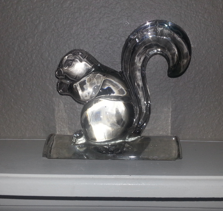 And now… for the awesome. Words fail me, and only liberal amounts of booze can coax these meager words from me. I can finally take down the collage of @Indi303 pictures I have above my mantle, and replace them with something truly worthy. No more plotting to end Indi in a blaze of fruit loops and pickles, I now have something positive to guide me through life. My new shrine begins with this epic glass sculpture of a squirrel, pictured below in all of its glory. By tomorrow, my squirrel minions will be lining up to worship at this alter, leaving little gifts of shelled almonds, Keebler Club Minis, and commuters’ spleens. This glorious squirrel-god will happily accept those offerings, and direct me how to proceed in pissing all over the security industry. Oh squirrel-god, please guide me…