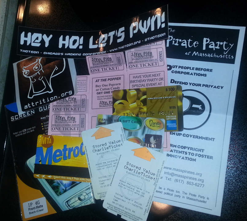 Yes, he sent me wonderful paperwork, including this awesome sticker of squirrel and .. hey wait, that fucker sent my own sticker back to me! On the up side, if I want to go to a creepy amusement park and run the risk of ending up the plot of a CSI episode, I now have plenty of tickets. He was also very generous and sent me two gift cards! I have a strong feeling if I check the balances, I may come out with $1.32 between them. Hey, I am not complaining, that can buy me four tacos; it’s Denver, I know which trucks to go to.