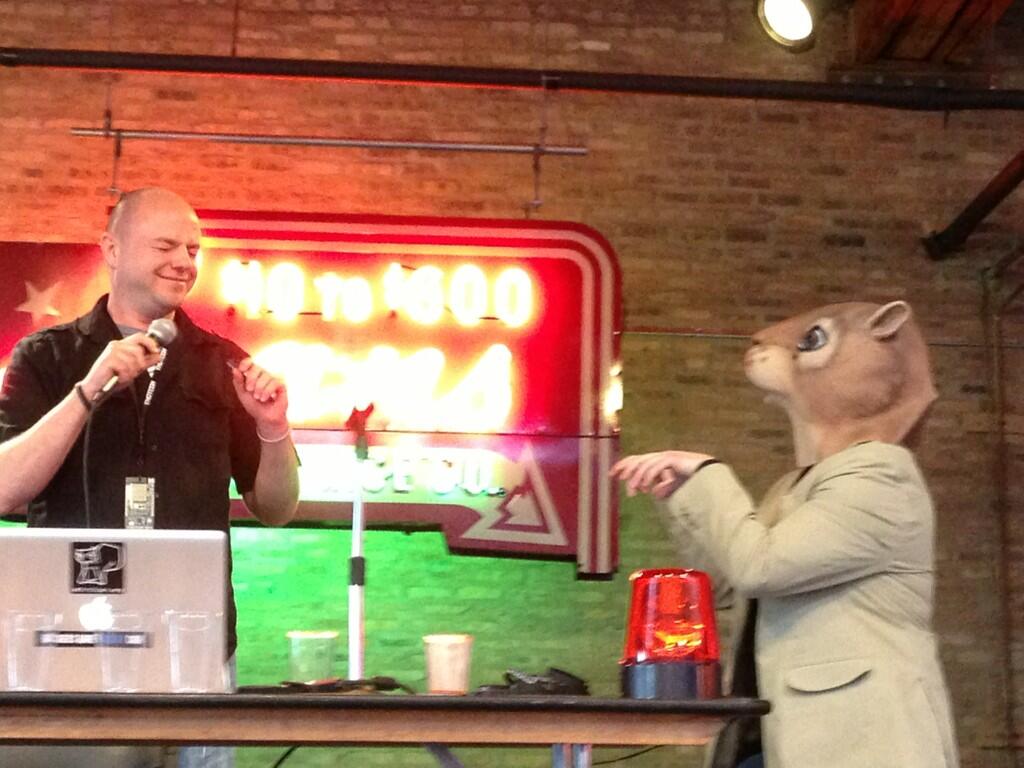 At 3:00PM, Josh Corman and I took the stage to give our “Cyberwar: Not what we were expecting” talk. With some new slides and updated material, I ran a bit longer than I should have causing Josh to hurry through the last bit. We really should have boiled it down a bit, or bribed someone for a 90 minute speaking slot. Part of the delay though, is fully on Corman’s shoulders. While I was talking, he quickly put on a squirrel mask and hopped across the stage at me. No, this was not staged. The main reason it “blue screened” me as Josh put it, is that I own one of these masks. I certainly wasn’t expecting to see it hopping across the stage at me mid-presentation. Well played Corman.