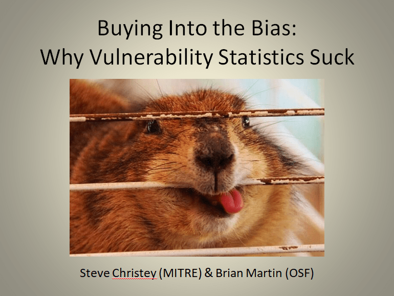Last week, Steve Christey and I gave a presentation at Black Hat Briefings 2013 in Las Vegas about vulnerability statistics. We submitted a brief whitepaper on the topic, reproduced below, to accompany the slides that are now available.