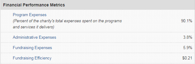 I started by showing Lyger what Red Cross looks like under Charity Navigator, which is a 501c3 that I support too. With 90% going to program expenses, that is excellent, despite a 3/4 star rating (the CN star rating is more nuanced).