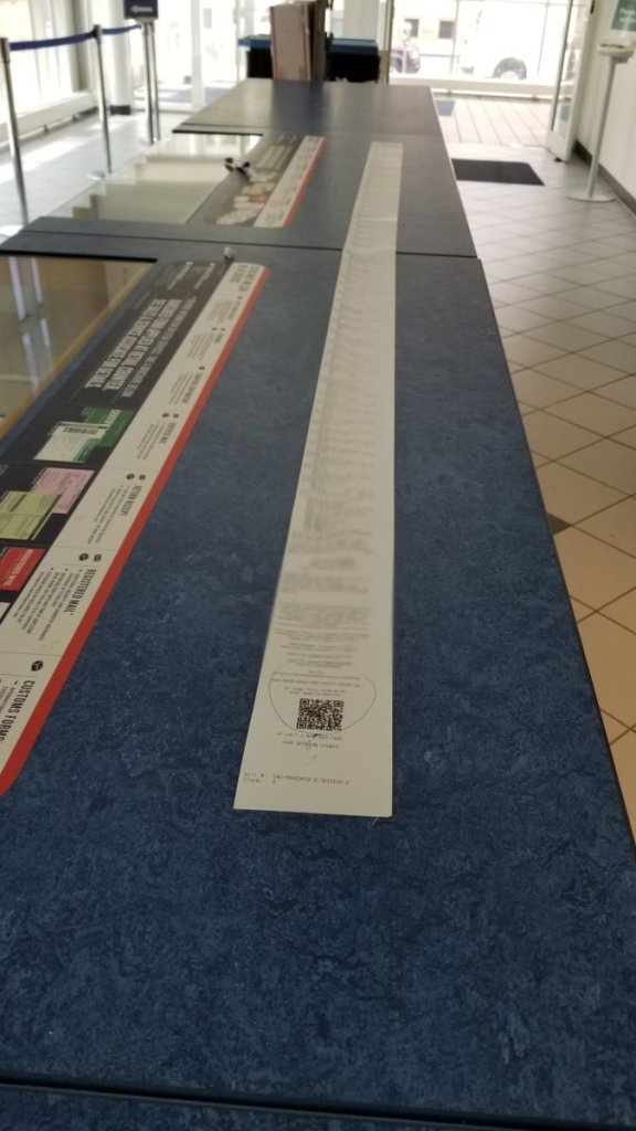 The opposite of inspiration came in two forms. First, while the badges w/ lanyards cost $298.60, but the postage to mail them out to x people cost $448.12, meaning the entire effort cost $746.72. This was due to the lanyards, which meant the badge couldn’t go as an envelope; they had to go as a package. Each envelope cost $3.50 domestic, $10 Canadian, and between $13.75 and $14.25 to mail international. This resulted in one fun trip to the post office that took around 30 minutes and produced a generous receipt.