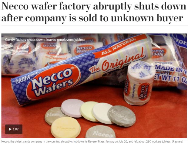 Recently, the Necco wafer factory abruptly shut down after the company sold it to an “unknown buyer”.