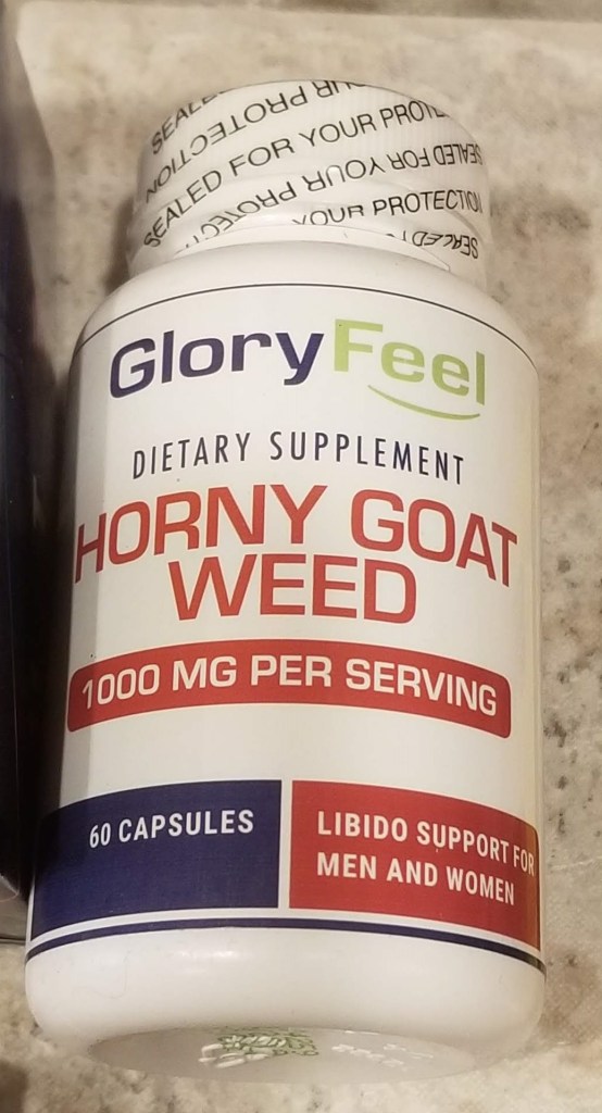 A few highlights from the box. First, a bottle from Punkis’ stash of Horny Goat Weed, a “dietary supplement” for “libido support“. Apparently he stocked up for the pandemic and had too much stock. Bottle “sealed for your protection” a lesson he never learned even after his 18th kid.