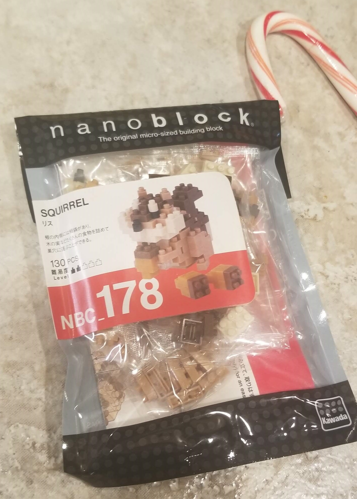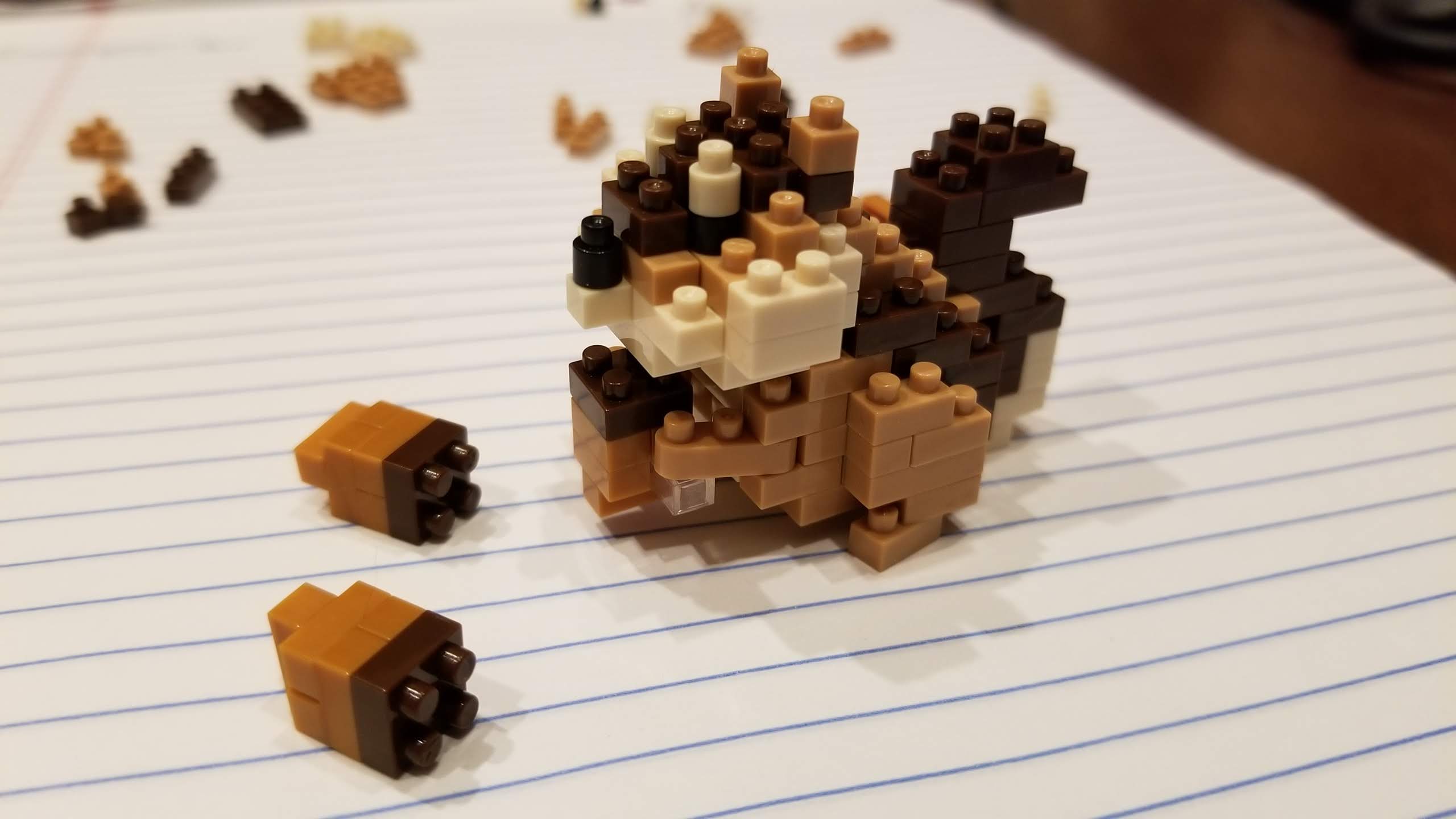 The nanoblock NBC_178, aka the Squirrel! If you are looking at it thinking it is a Chipmunk, you are wrong (notice the tail). And even if you were right they are in the Sciuridae family! Now, I have seen this and even built one before, that completed pic is from last year. But, I asked if I should re-gift or build again and put on my second desk and I was told the second desk it is. So I have another lego project in my future. The hidden bonus? Nanoblock kits come with quite a few extra pieces; enough to make two extra acorns even. =) Box #4…