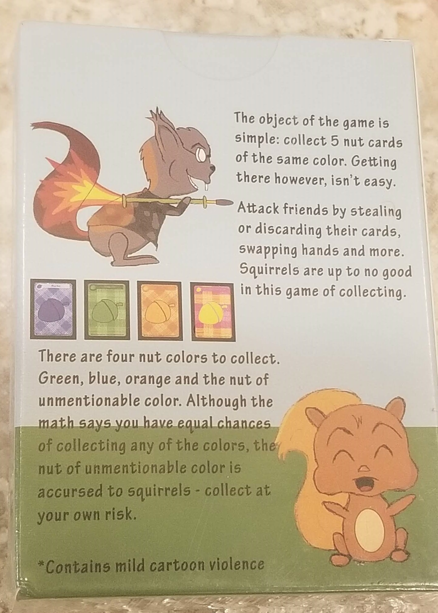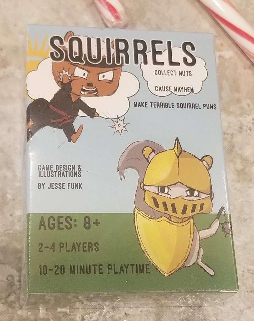 Squirrels, the game! Collect Nuts, Cause Mayhem, Make Terrible Squirrel puns! Yes, yes, and more yes! At squirrel nutworking events I am known for cracking a good joke before I leaf for the night. The best part… never seen this game before. Three for three! Box #3…