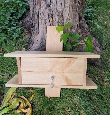 Ultimately, we ended up removing an old bird house that had never been used since installation and putting the new box in its place. It wasn’t quite as high as I would have liked, but higher than some other nest boxes that have been put up. One side offered easy access to the box off the tree trunk but the other might not have been perfect, but a squirrel could definitely go from trunk to that entrance too. I left her place at 7pm with a strong hope that the squirrels who watched us do all that understood what had happened. She told me she’d watch tonight to try to see if any went in and would watch in the morning like she always did to see if squirrels emerged. I left a huge handful of sunflower seeds on top of the box and even more below at the foot of the trunk to help them while they adjust.