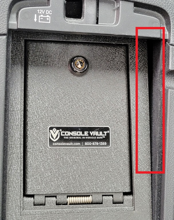 When trying to install it, the vault did not line up perfectly in a 2021 Grand Cherokee. This caused a slight gap on one of the sides of the console which led to a screw falling down. Additionally, one of the two screw holes to secure it did not line up and could not be used. These are highlighted in red: