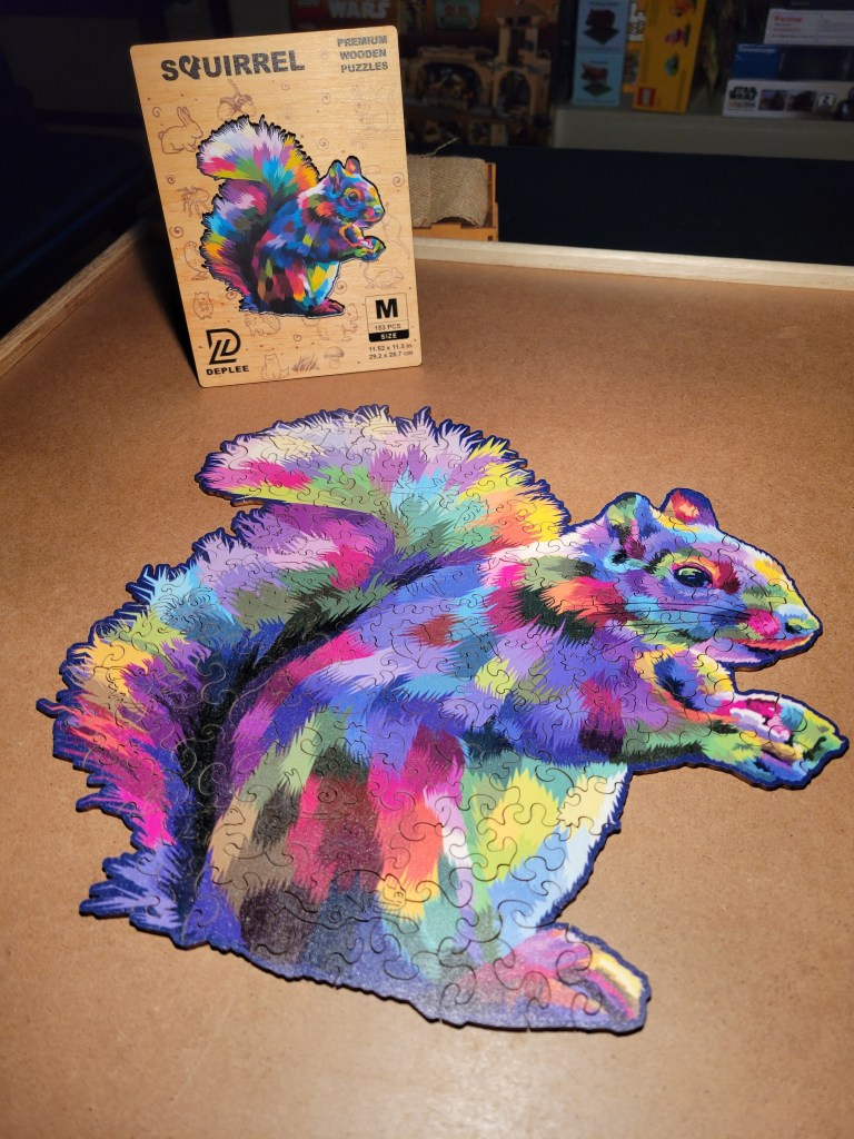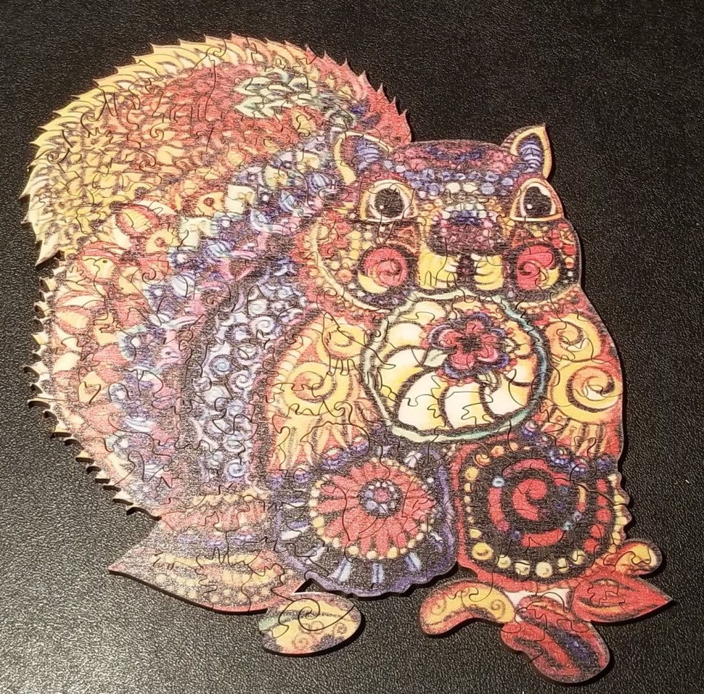 Next is an interesting trio! First up is a custom one from Peaceful Wooden Puzzles, a gift from my friend Andrea who took that picture. This one, like the one from Lisa, was quite challenging due to the color template and blend of squirrel into the tree. The middle puzzle is quite unique in the shapes, if you look closely. That is from Bewilderness Puzzles. Looking at their store now, I see a lot of new ones that are quite interesting and may soon be on my list! Finally, the odd squirrel is a knock-off from Ali Express and it was under $10. I got what I paid for. The colors were not vibrant, and while the pieces fit together well, it just wasn’t as rewarding as many other brands.