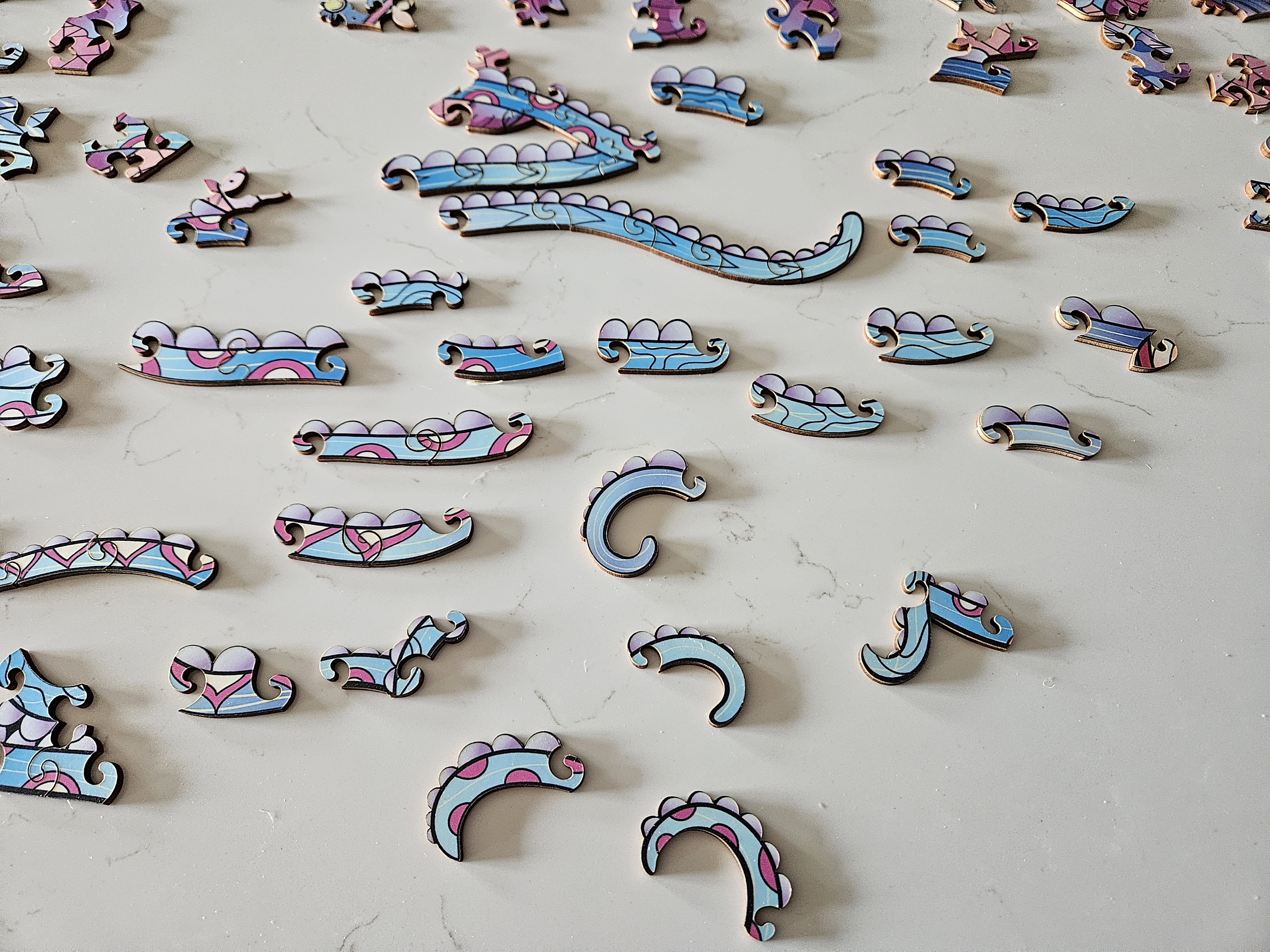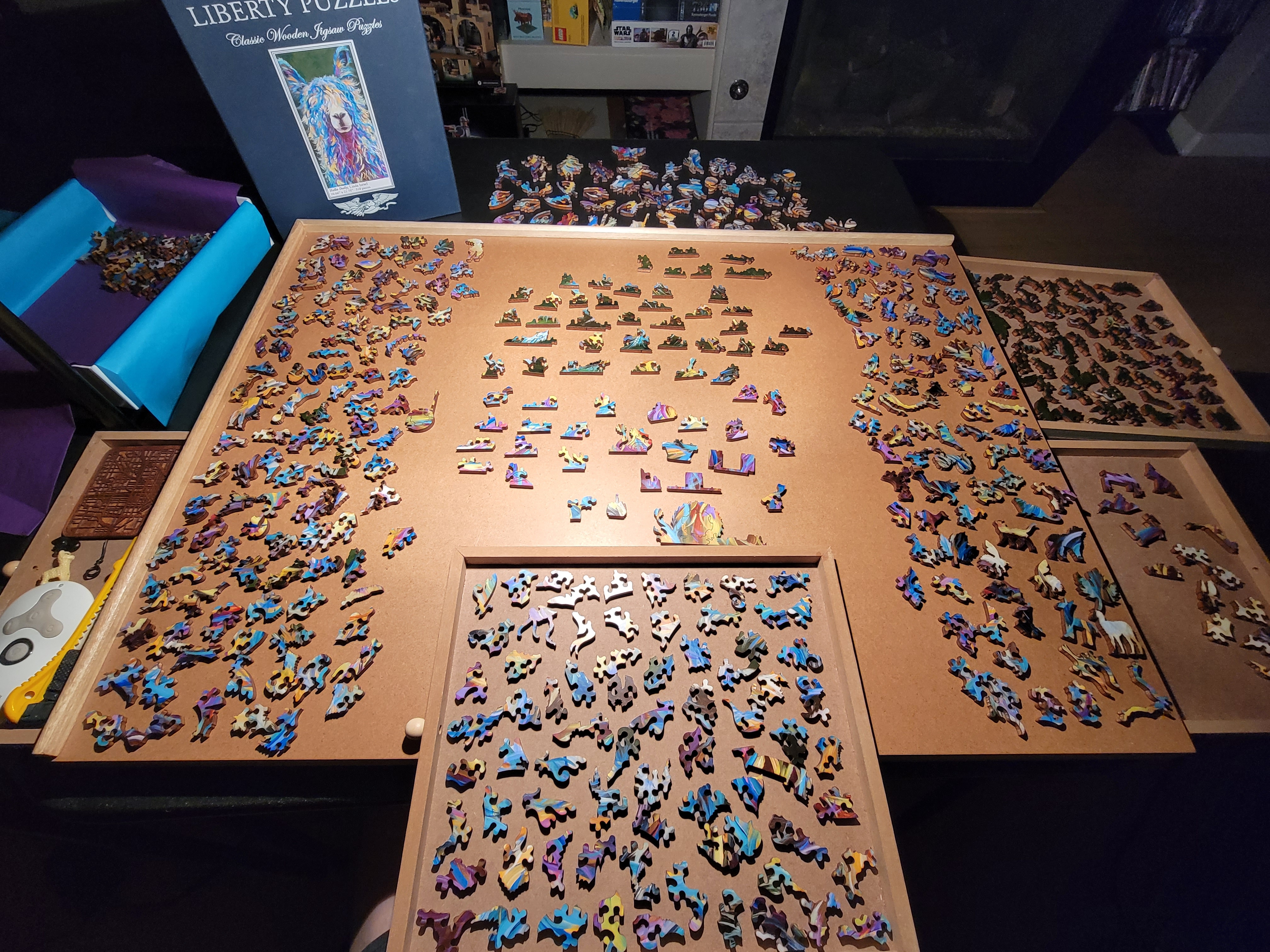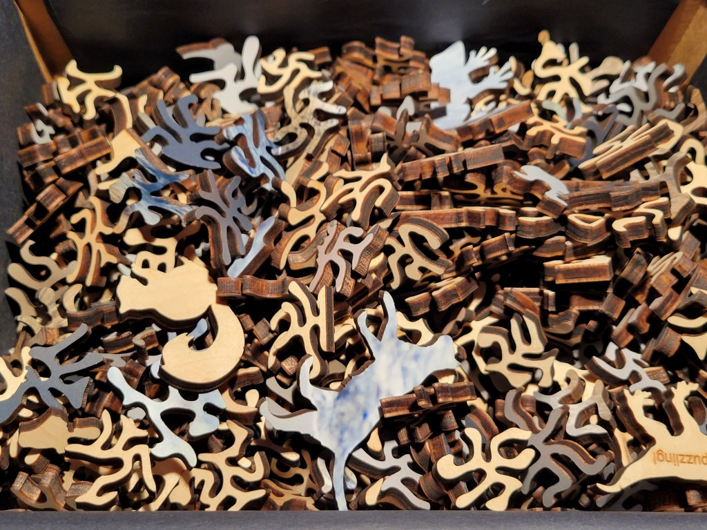 Growing up as a kid, I did puzzles with my mom and grandmom, especially around Christmas. It was standard to have a puzzle going on a card table near the kitchen and whenever someone walked by, they did a couple pieces. After the big feast, we all sat around and worked to complete it. Between that period and COVID, I hadn’t touched a puzzle. While many started taking up sourdough bread baking (how arbitrary!), I restarted the puzzles. However, the big upgrade was moving from the old cardboard to new laser-cut wood puzzles. Let me tell you, the difference is stark.