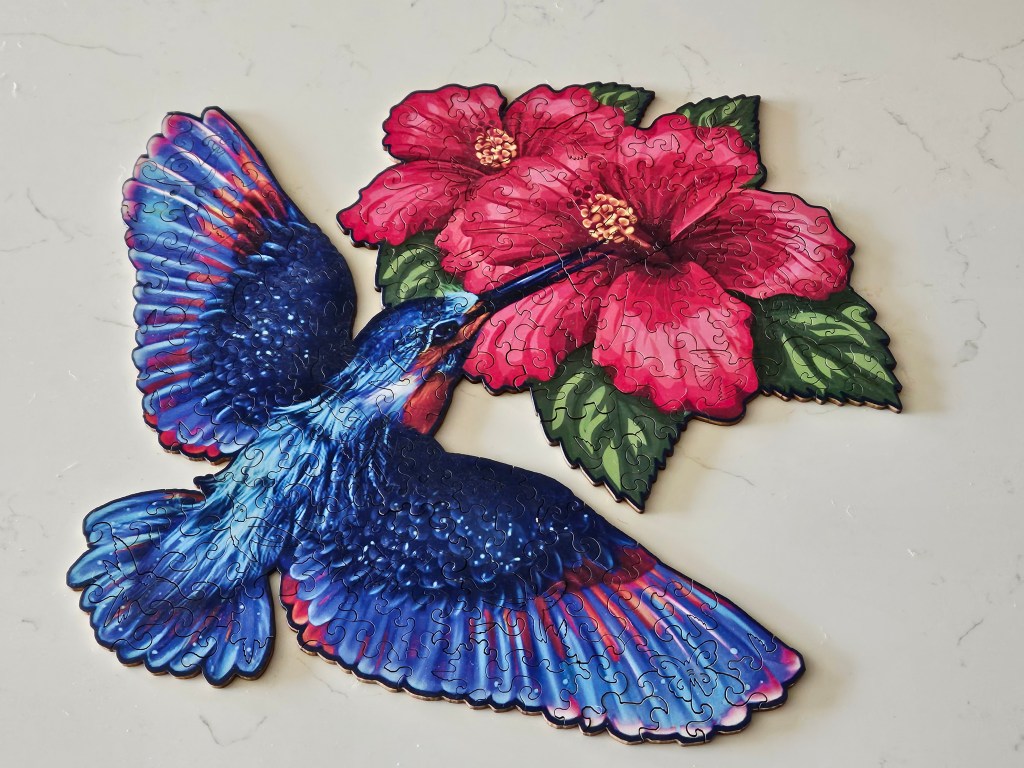 Premium Wooden Puzzles – Available on Amazon, you can see the colors are more vibrant than the prior. The pieces are considerably smaller and you see the unique shapes. Most vendors do this, adding up to 25 custom cuts that typically fit the theme of the puzzle. In this case a lot of bird shapes. It’s a nice touch and fun to find all the pieces to see what’s included. Pro tip: some vendors will put lines on the back of the pieces to help you determine they are intended to be something. This helps when you occasionally get a shape that you think is something, but aren’t quite sure!