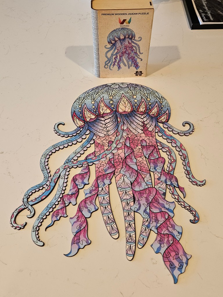 Creative Wooden Puzzles – Available on Amazon, I highly recommend these for beginner to intermediate puzzlers. As you can see, great color, wonderful shapes, and creative art. The pieces feel good and lock well, resulting in a clean and smooth build.