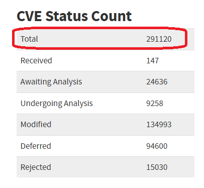 However, as of April 22, NVD only showed a total of 291,120. That is a difficult discrepancy and hard to imagine how it was overlooked.
